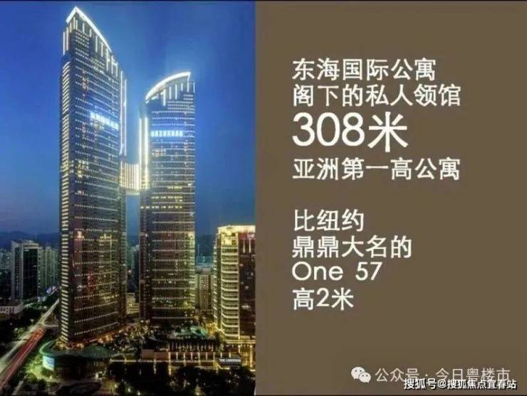 当年的东海国际公寓也是“拉风”了很长一段时间,当时被成为“308米亚洲第一高公寓”,在2016年,还被评为“中国十大超级豪宅”、“亚洲十大超级豪宅”。