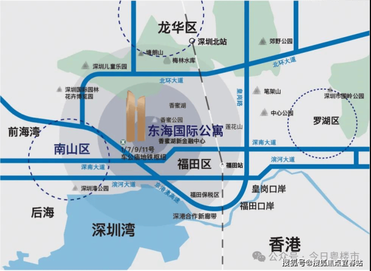 1、7、9、11号线车公庙站地铁枢纽,福田高铁站14分钟快速通勤香港;