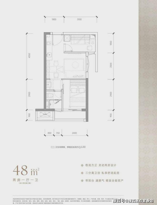 灵活产品:建面约38-43㎡户型,户户带阳台,可自由分割定制,适配自住、出租、商务等多元需求。