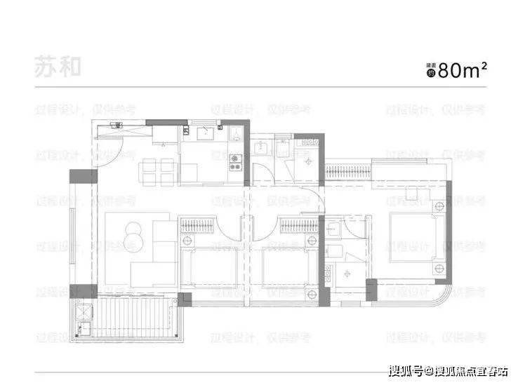 厨房和公卫等公共空间和卧室都被走廊隔开,比较科学,能减少噪音影响。