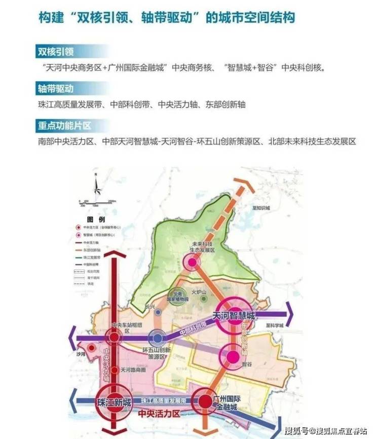 在《广州市天河区国土空间总体规划》草案中,将“智慧城+智谷”中央科创核明确为引领城市发展的双核之一,提升到与珠江新城+金融城同等的高度。