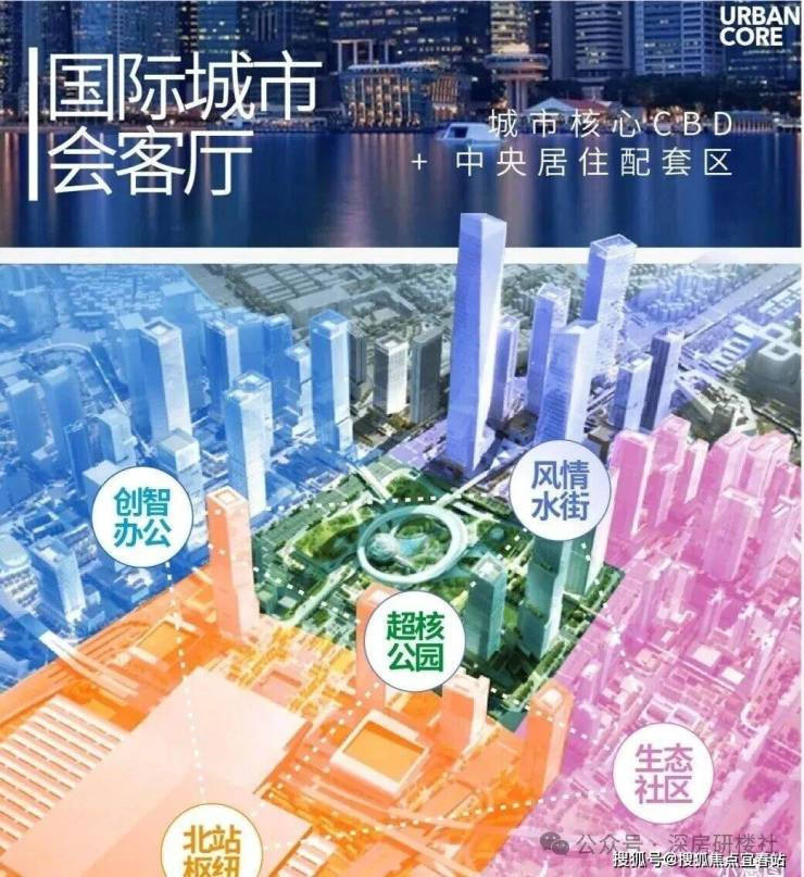 深圳北站总部基地作为七大总部基地之一,2000 亿巨资投入,以高标准缔造深圳中芯,形成多元复合的国际会客厅,在北站总部基地升级后,以城市超核为中心,打造全新体验的城市新封面,成就湾区未来枢纽超级地标。
