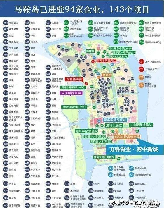 万科深业湾中新城位于翠亨新区马鞍岛南部码头片区,于2021年6月23日由万科和深业集团联合竞得,将通过综合开发打造成集口岸、会展、文旅、商业、酒店、社区等产业与商住功能于一体的大型口岸商业综合体,其中还将建成标志性建筑“未来之门”。整体预计总投资规模约270亿元。