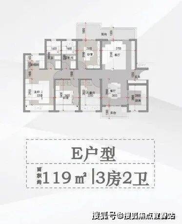 E户型 面积约119平方米 3房2卫