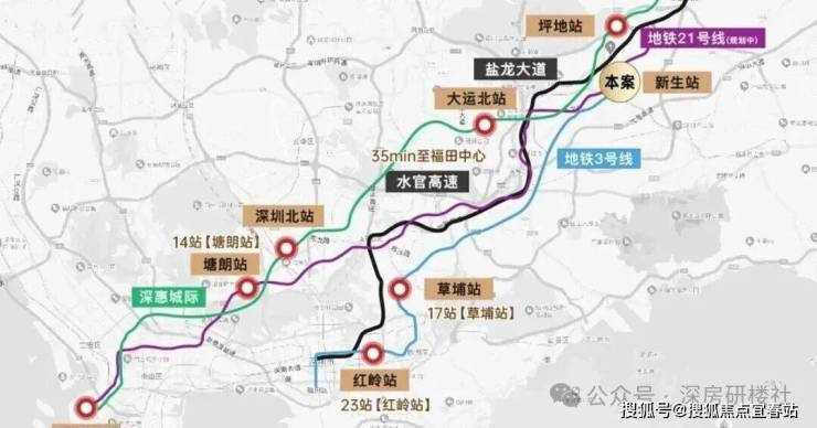 交通配套:3号线跟21号线双地铁:项目直线1公里3号线(建设中)/21号线(规划中)新生站,便捷通达罗湖、福田和前海中心;