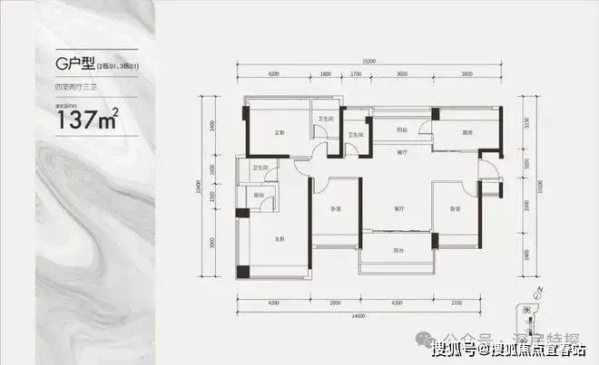 【项目户型】:108/137㎡奢阔四房