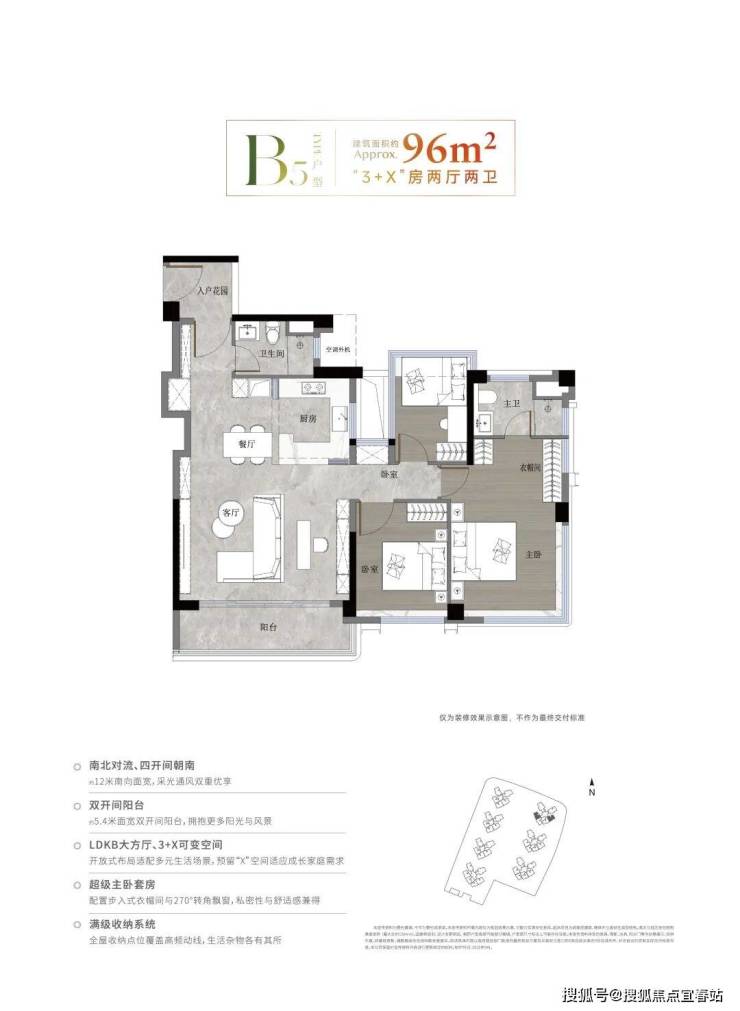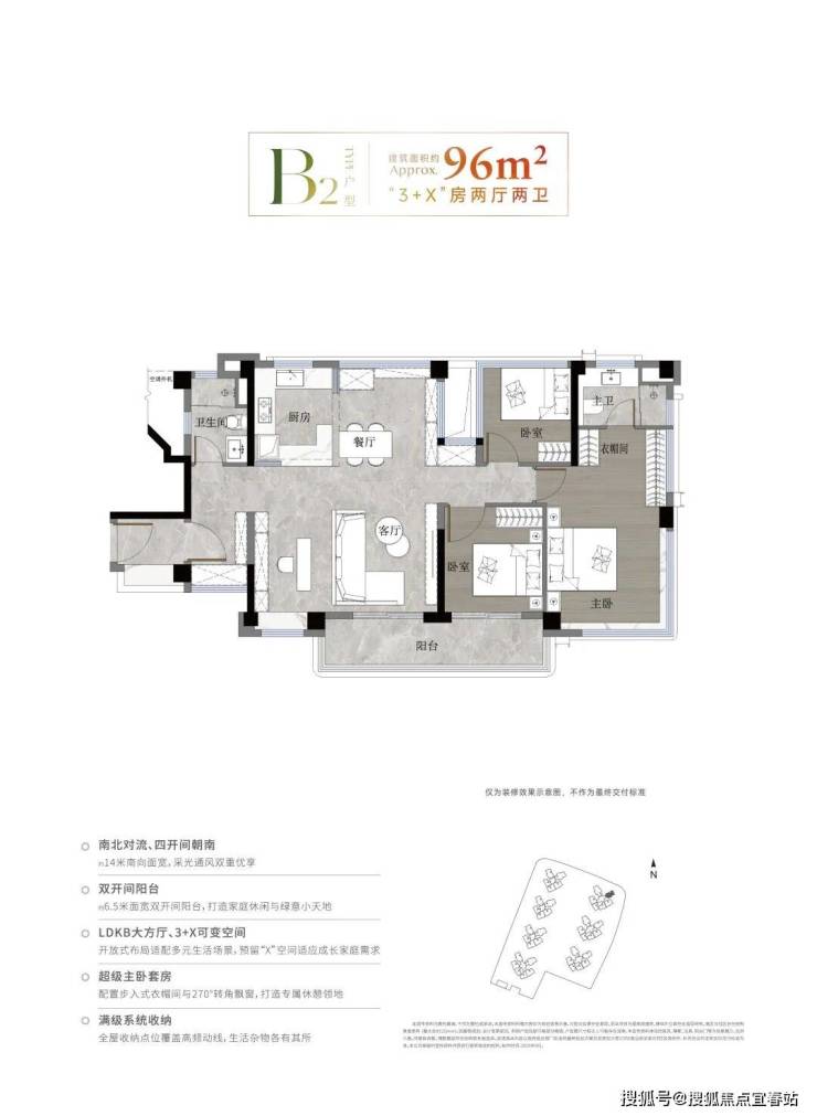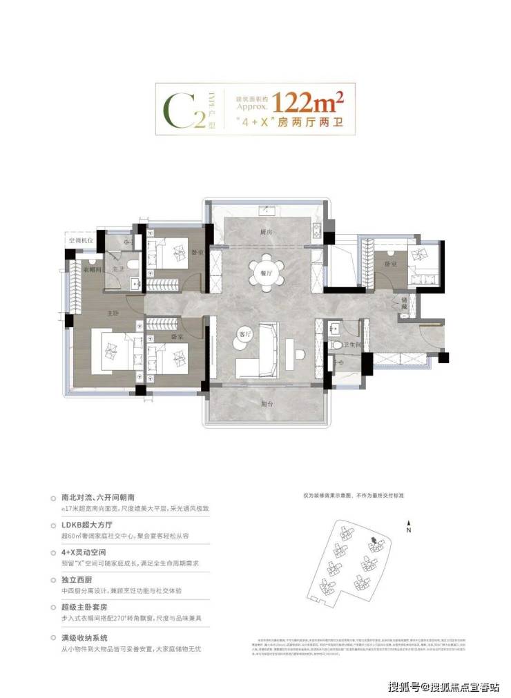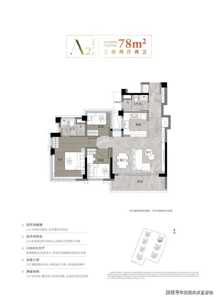 主力79-142㎡二至四房,按新规设计使用率高达120%,同等面积多一房,性价比突出。户型方正、全南向布局,部分带270°转角飘窗与超长景观阳台,LDKG方厅设计,涵盖刚需到终极改善全户型,适配不同家庭需求。