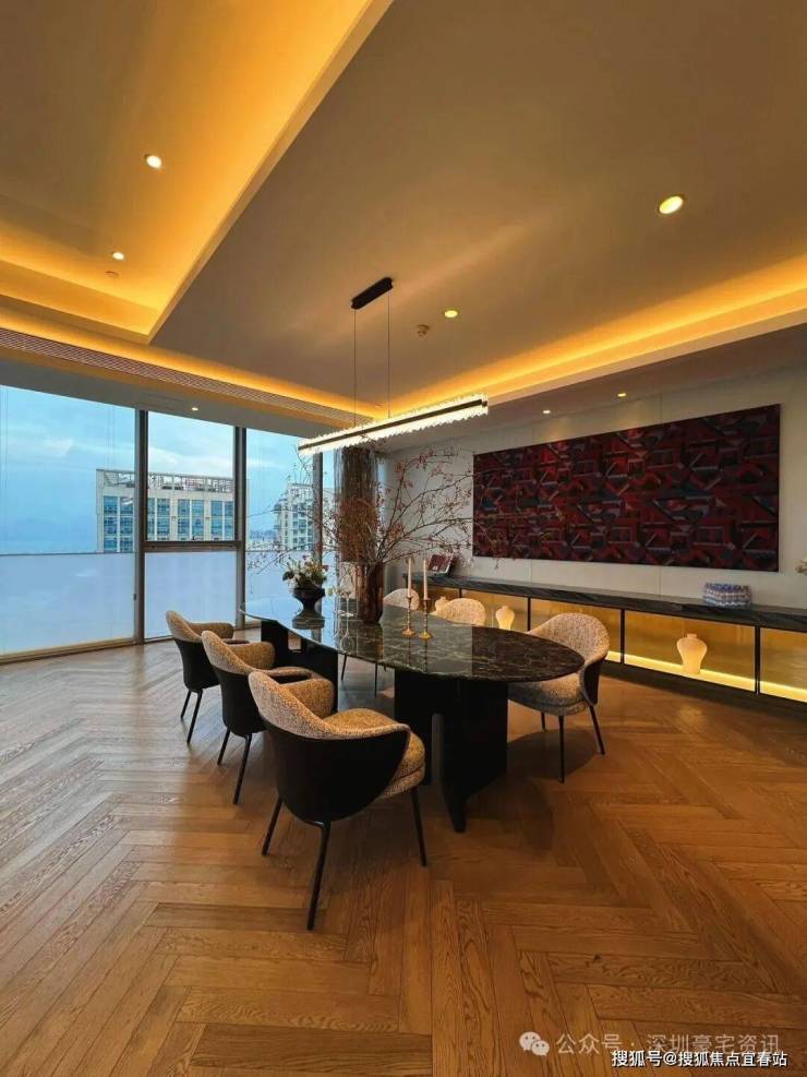在设计上除了四周承重柱外,其他墙体都是可以打通,让客厅视野更加开阔,以景观为媒介,让豪宅挣脱空间束缚,与时间无缝衔接。