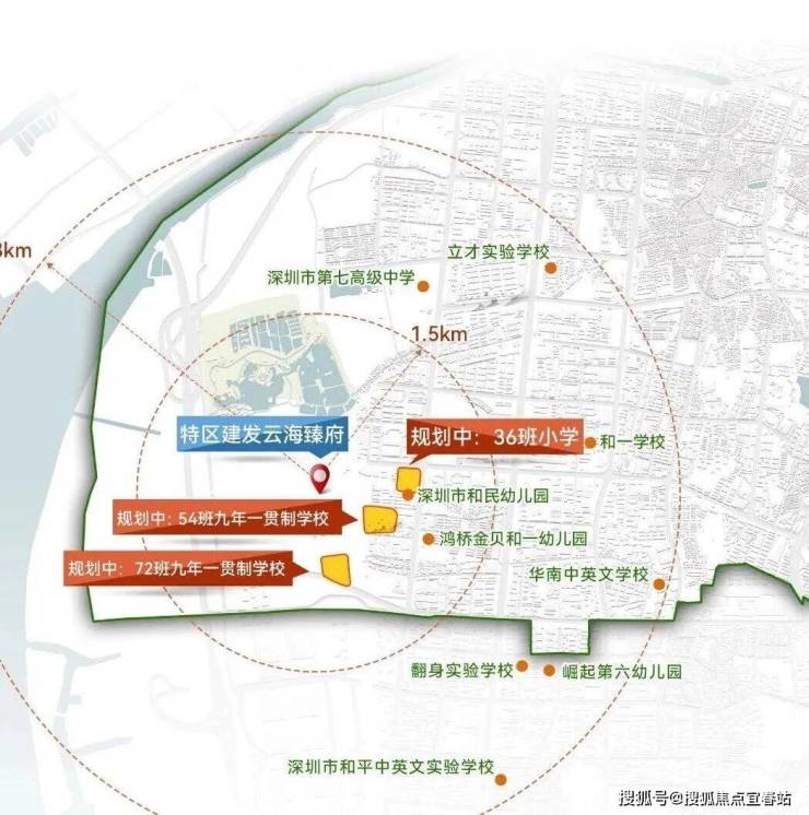 家楼下的18班幼儿园(在建)、蚝业小学(18个班,宝安区双优学校)、片区规划两所九年一贯制学校。