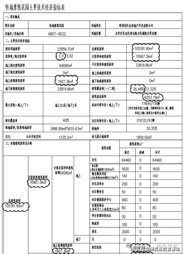 项目由5栋高层住宅组成,分别为1栋、2栋、3栋、4栋、5栋1、2单元;地上30层/地下2层,容积率,绿化率40%,车位:779个。