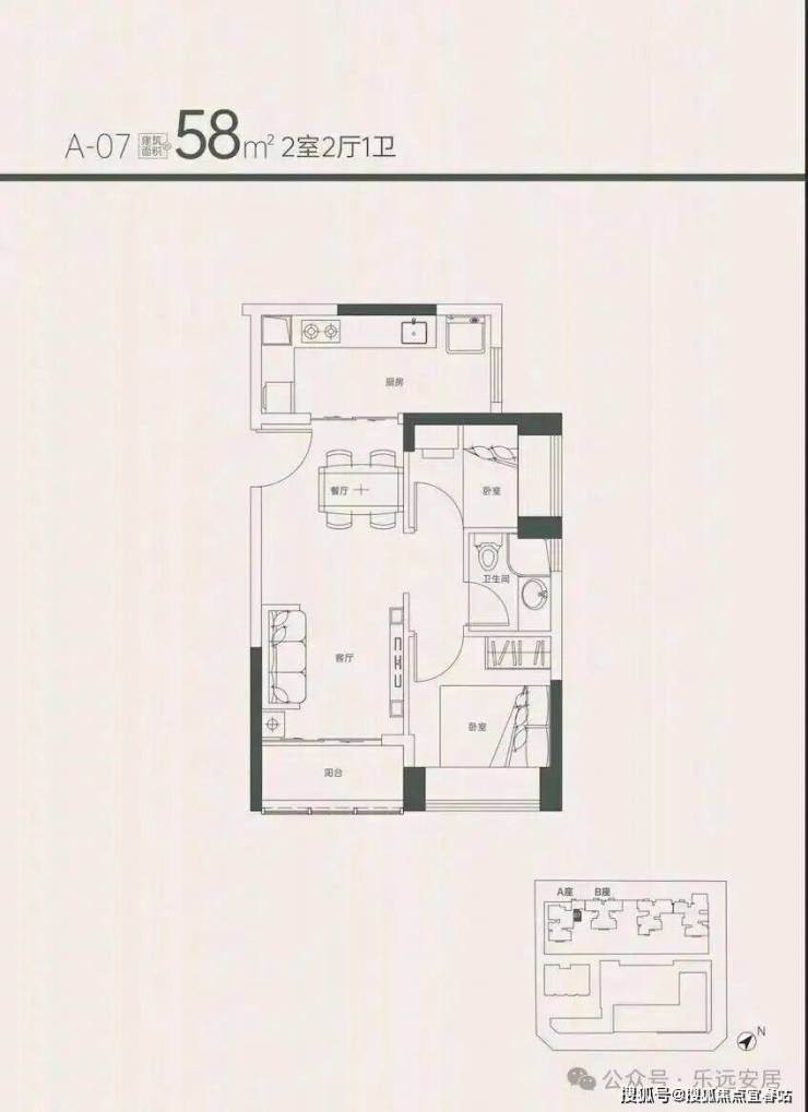 1、55㎡ 2房 单价6.8万/㎡起 总价373万起 (5楼4套)