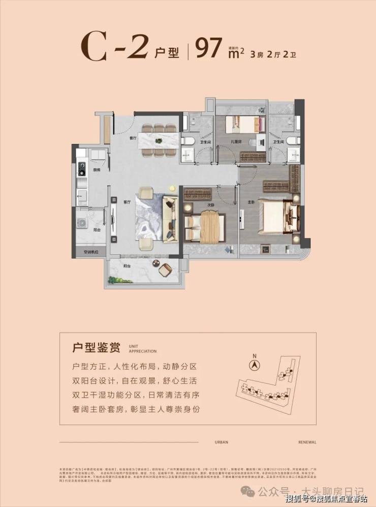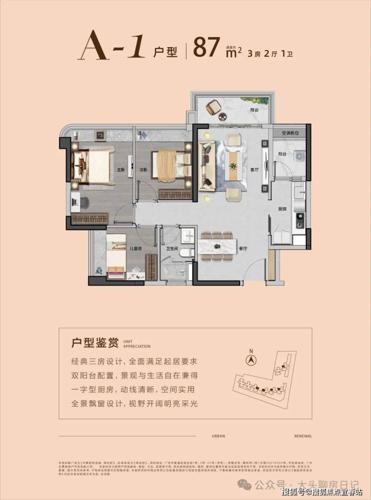【约87㎡三房两厅一卫】望中心园林 | 双阳台对流设计 | 超阔视野
