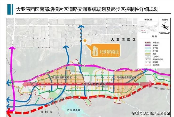 »» 【坐标城市中轴 约3km一脉深圳】• 大亚湾城市中央命脉-龙山五路• 直线距离约3km深圳坪山• 2.5km直达深汕第二高速横畲出口(建设中)