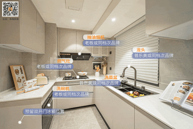 比如厨房配备老板或同等品牌抽油烟机、燃气灶、洗碗机、热水器四件套,生活更便利。