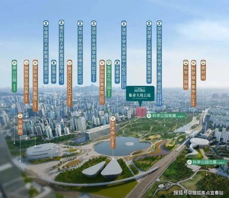 振业天境云庭坐落于光明中心区核心地段,毗邻208万㎡科学公园(北翼已开园,南翼加速建设中),与深圳科技馆、国际美术馆等文化地标为邻。这里不仅是深圳“一心两区、绿环萦绕”空间格局的核心承载区,更是粤港澳大湾区广深港科技创新走廊的关键节点。随着科学城大科学装置集群中试转化基地(投资12.16亿)等重大项目落地,量子信息、新材料等尖端产业加速集聚,区域价值正迎来爆发式增长。