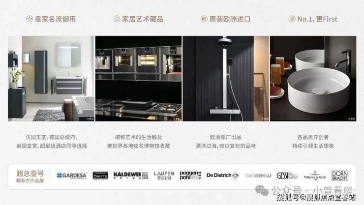 全屋精装引入诸多全球一流品牌,功能性的满足外,更看见德国皇帝、奥地利女王、超星级酒店的同等选择,世界各地知名博物馆的收藏品牌。