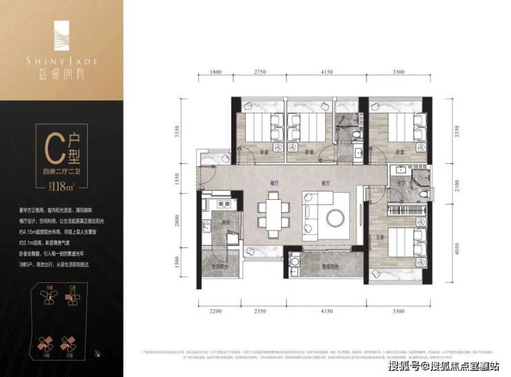 118㎡四房两厅二卫 折后总价650~780万