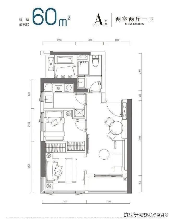 “望海玥”项目首批389套公寓,35层高,户型36-60㎡,1-2房,精装修。