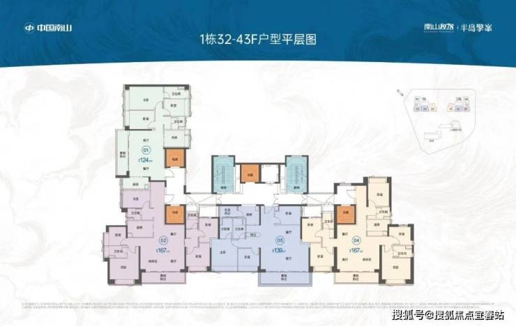 167㎡的5房2厅3卫,1栋02/2栋03高区户型,电梯入户送独立公区,设计的是竖厅双龙抱珠格局,四开间朝南,超宽敞客厅巨幕阳台,主卧大套间设计,U型厨房,双公卫三段式分离,得房率:72.07%(不含赠送),西南朝向。