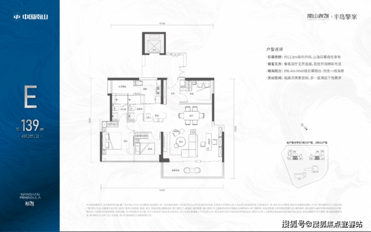 139㎡-4房2厅2卫,折后总价1120-1152万/套,单价8.08-8.31万/㎡。