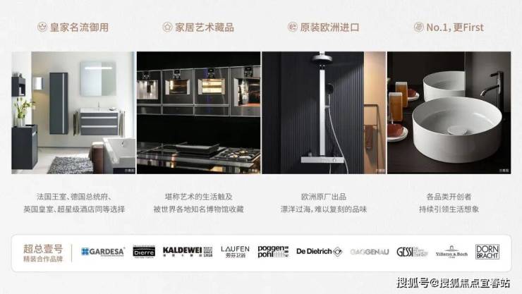 全屋精装引入诸多全球一流品牌,功能性的满足外,更看见德国皇帝、奥地利女王、超星级酒店的同等选择,世界各地知名博物馆的收藏品牌。