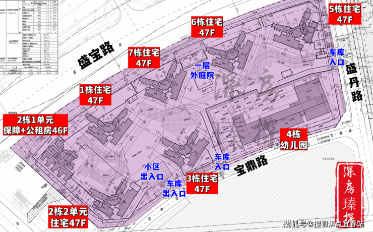 总规划2623户,其中商品房2250户(包含回迁房,具体房源量暂不明确),保障房373户,8栋1单元3梯5户,其它栋数均是3梯6户设计,地下室有3层,规划1919个车位,其中含充电桩车位577个,100%预留充电桩,车位比1:0.73,配建有公交首末站,邮政所,菜市场。