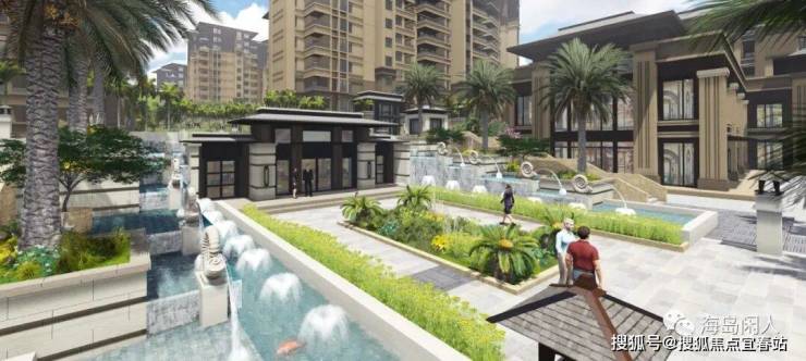 (五)园林景观● 约2万㎡中庭景观 串联出归家的仪式感依山傍水是国人挥之不去的居住情结。景观设计上,项目以东南亚风格为蓝本,融合层层递进的水系景观,绘就了这独有的格调与景致。从入口的叠水景观,到拾阶而上的汀步水景,再到中央泳池,呼吸山间丰富鲜氧,静赏脚下潺潺流水。● 会呼吸的建筑 为理想而高定著名建筑师隈研吾说:“优秀的建筑是自然的延续”。为了践行这一理念,名人豪苑将人车分流的设计、绿色环保的材料植入项目,不惜成本利用“海绵城市”的技术创新与设计延伸,建造出一个会呼吸的高定社区。