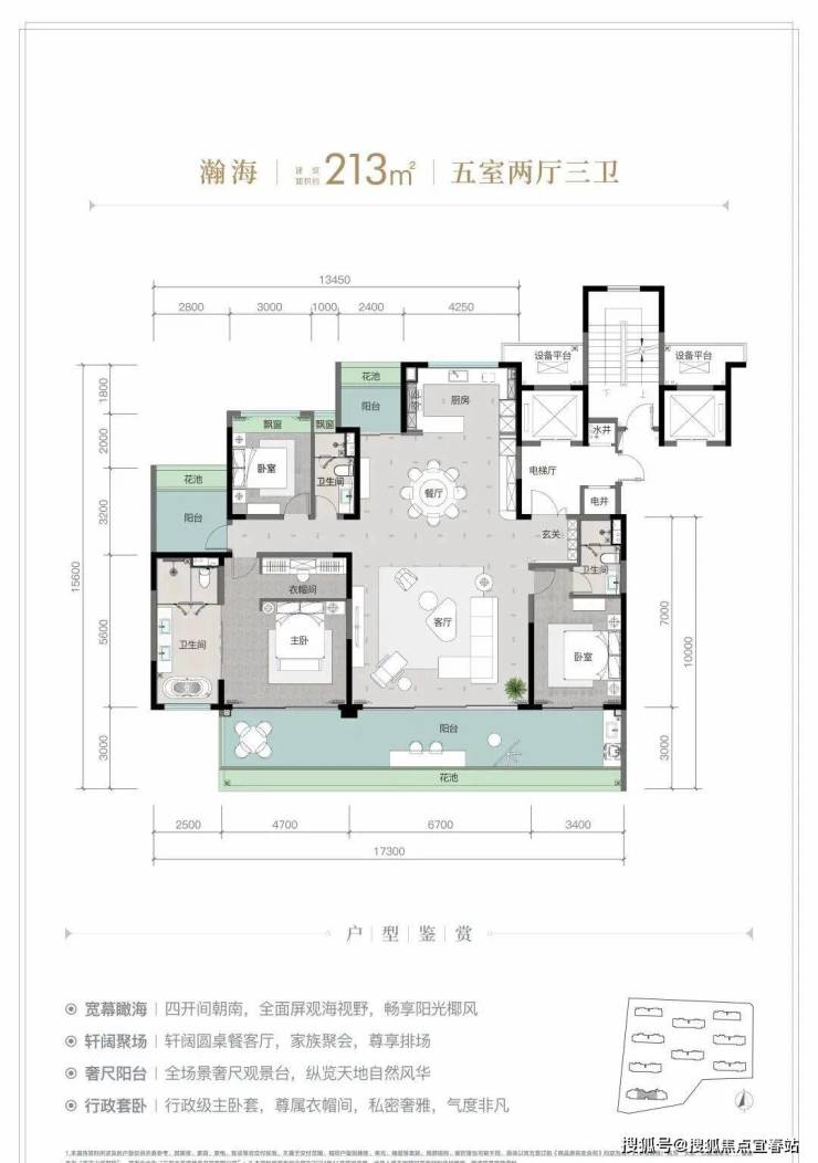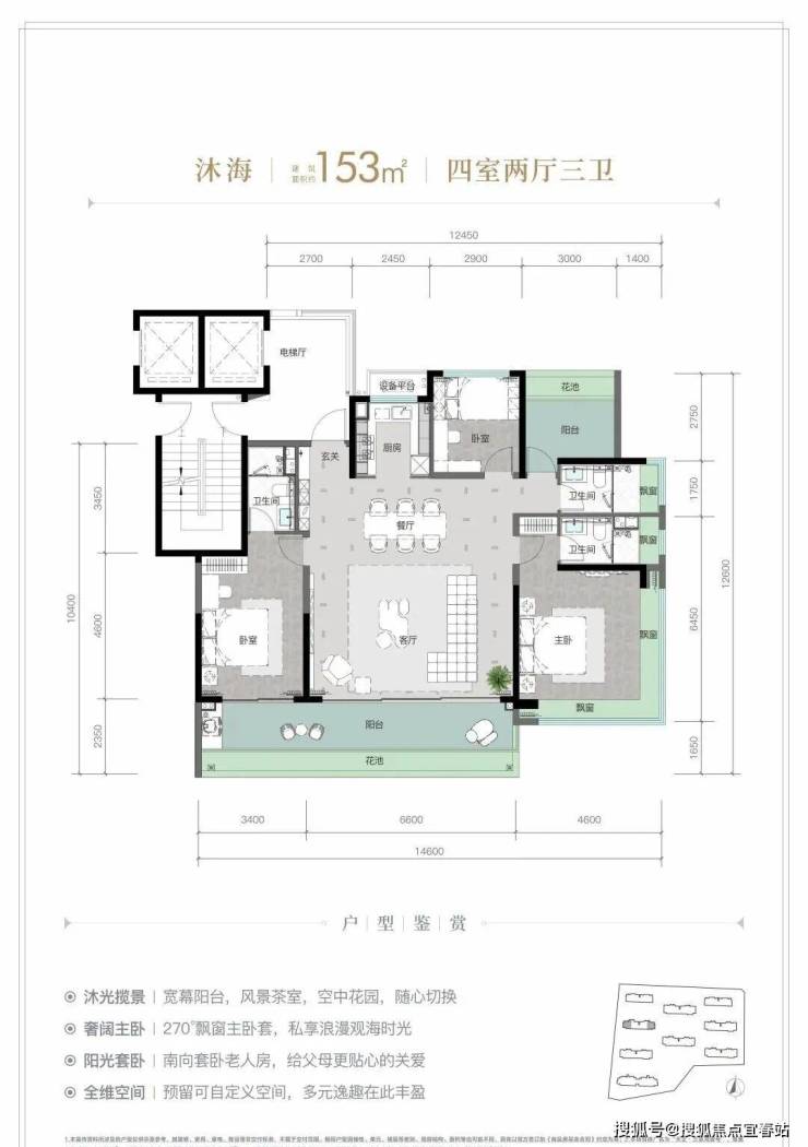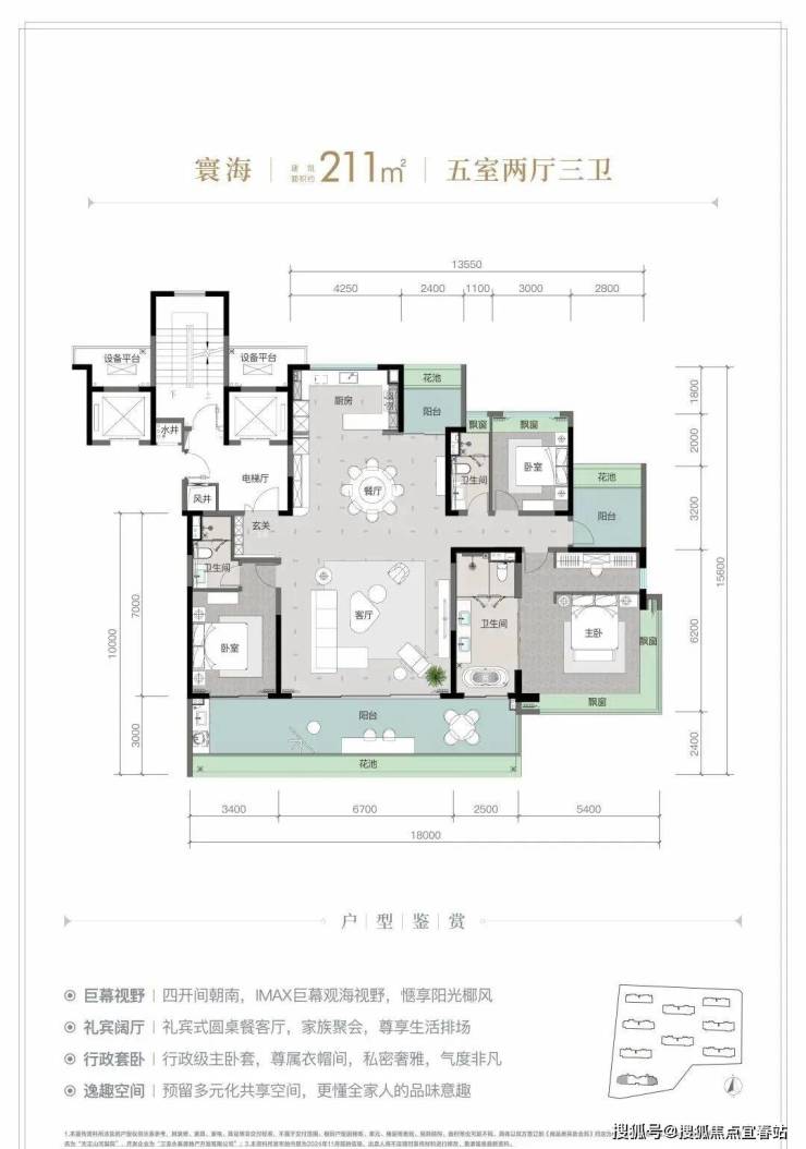规划建筑面积约126-213㎡观海奢装大平层,约3.1米阔绰层高,部分户型创新设计270°全景飘窗主卧套、四开间朝南等,全成品高标奢装,营造全新舒居体验。