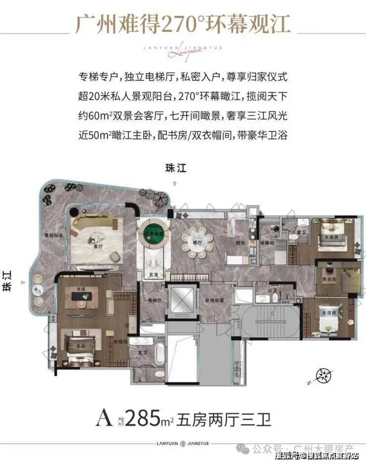 【产品面积】:约193㎡/285㎡瞰江艺术大宅