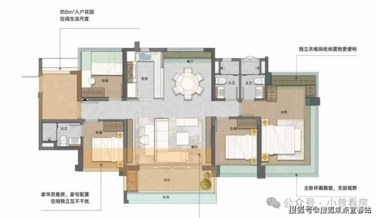 建面130平四房,LDKB大方厅,客厅就有57平,还做了双主套设计,豪宅的配置互不干扰。