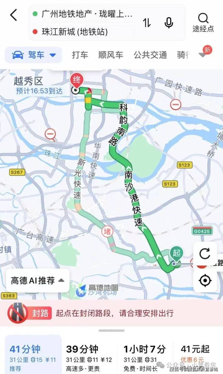 自驾的话也是非常方便,项目距离南沙快速港仅900米,附近还有亚运大道,接下来小何就给大家实测一下自驾或地铁通勤珠江新城、琶洲需要多久: