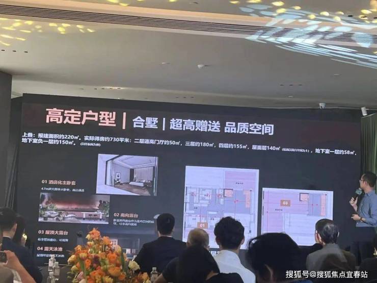 上叠产品报建面积约220㎡,实际得房建面约730㎡,换算一下,得房率约331%。