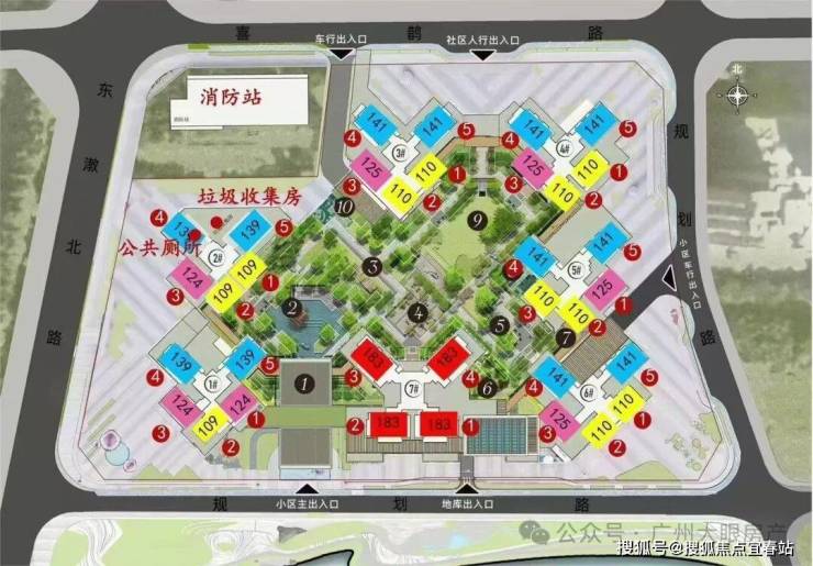 瑧园整体由7栋楼组成,采用了围合式布局,尽量保证更多的园林空间,保证了景观的完整和共享性,除此之外,瑧园通过创新风车型布置,实现了全南向设计,全盘东南向占比为2/3。