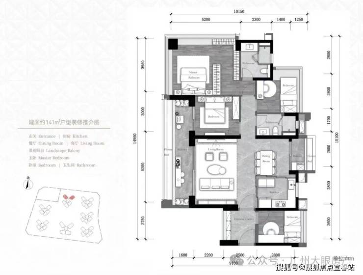 建面约𝟏𝟒𝟏m² 𝟑房+𝟐厅𝟐卫+灵动空间,全明多开间朝南,约𝟏𝟒.𝟔米IMAX采光视野,约𝟖.𝟐米景观大阳台,解放多重生活享受,主卧端厅设计,𝟐𝟕𝟎°全景采光,尽揽滨水美景