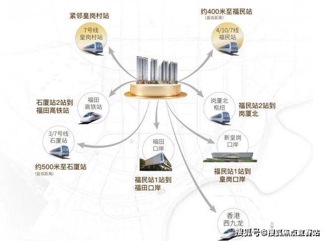 交通方面:地铁7号线 皇岗村站E/D口步行100米,4/10号线福民站300米,2站到皇岗口岸,多条公交线路直达口岸,跨境巴士无缝衔接香港。