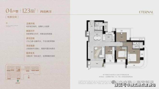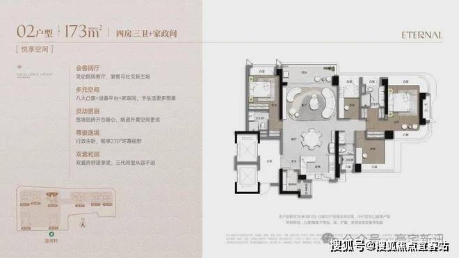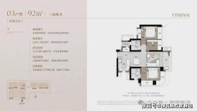 超高使用率90%+:通过“弹性方厅”(可变空间)、设备平台外拓、多飘窗实现。