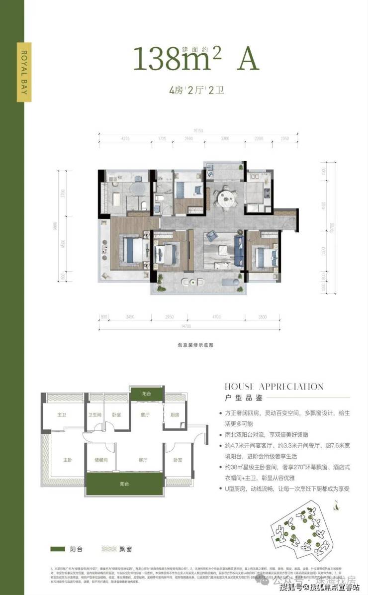 户型亮点:约 38 ㎡星级主卧套间,奢享 270°环幕飘窗、酒店式衣帽间+主卫
