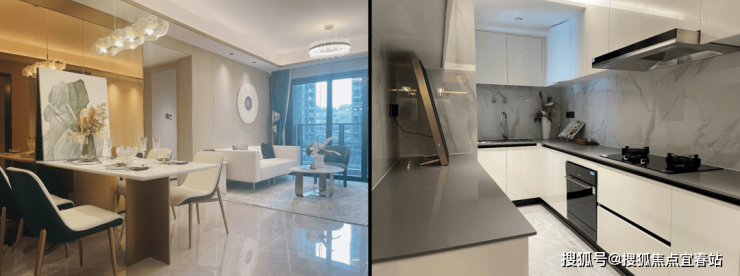 - 开放式厨房+客餐厅一体化设计,节省空间。