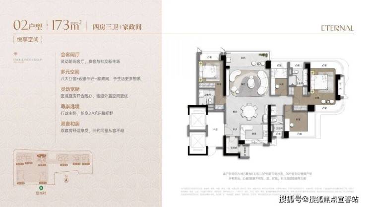 最大面积产品173㎡产品作为压轴藏品,户型整体正对深圳中轴,总览中轴灯光秀+各类深圳主活动会场。最高5房3卫双套房配置,让居住舒适体验更升一级。主卧做到270°环幕景观,超绝视野面。同时本户型还做到相对1梯1户的梯户配比,超绝奢宅体验。