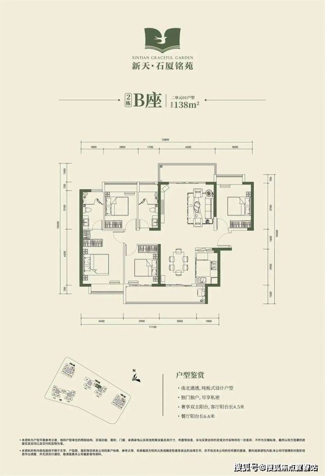 2栋B座一单元01、04户型、2栋B座二单元01户型:面积约为137-138㎡的4房2厅2卫