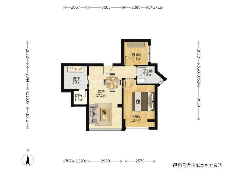 【产品面积】约37㎡两房(实际套内使用面积接近54㎡)