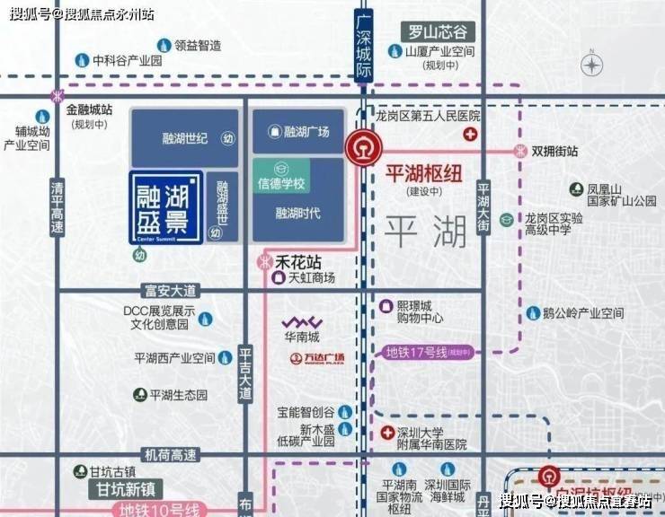 根据龙岗十四五规划,平湖将重点打造两大枢纽:平湖枢纽、白泥坑枢纽。离我们比较近的是平湖枢纽,这里汇聚四条轨道: