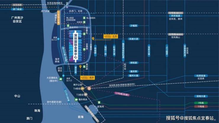 距地铁12号线(在建)会展中心南站和20号线(在建)会展中心北站;12号线通达南山,20号线则快速穿过机场东、西丽、车公庙,直达福田CBD