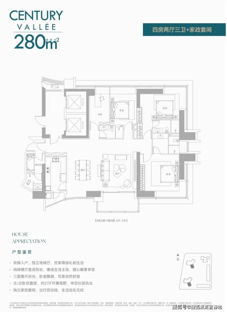 深业世纪山谷现在住宅还是定位相当高端的纯大平层,8梯3户,240㎡/280㎡配备两个独立电梯,380㎡双梯设计,实在任性!