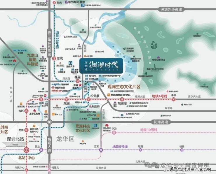 澜湖时代:由深物业集团开发,项目总占地面积约6.8万㎡;总建筑面积约62万㎡,计容建筑面积约43万㎡,共分6个地块开发,3块住宅用地、一块公寓用地、2块产业用地、1块公寓用地;澜湖时代·景悦府(住宅用地)、澜湖时代·景愉府(住宅用地)、澜湖时代·景怡府(住宅用地),澜湖时代·智造大厦(研发用地)、澜湖时代智慧大厦(研发用地)、澜湖时代御景苑(公寓用地);将建成集产业生产研发、住宅、公寓、商业街区于一体的产城综合体,是龙华北片区新的大型标杆项目。