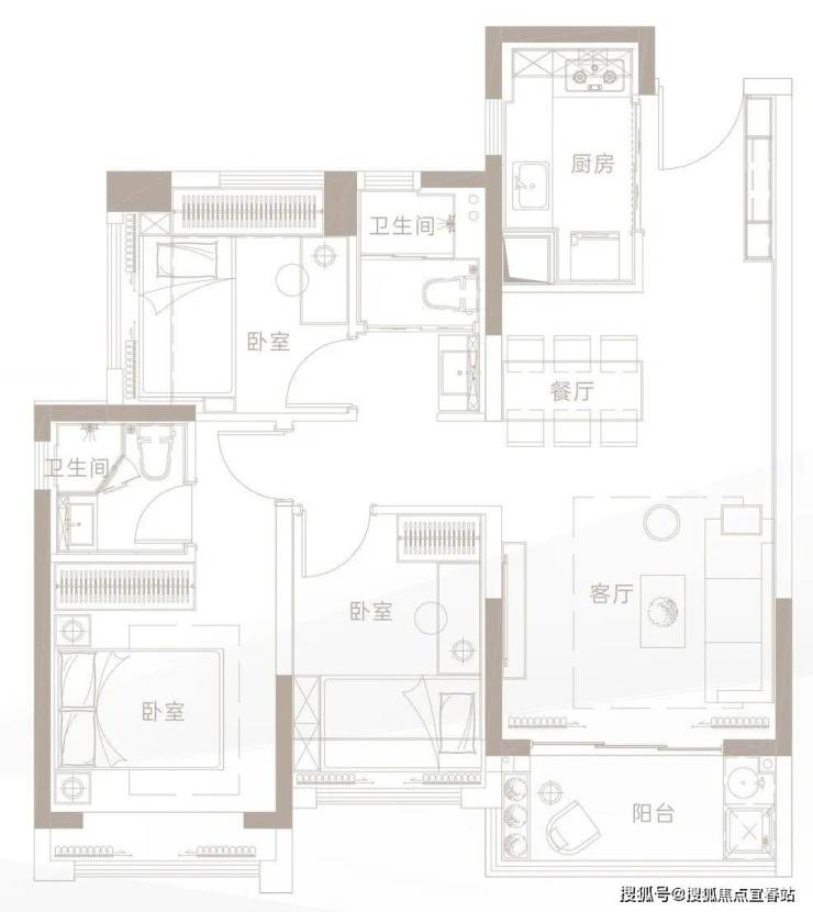 建面约79㎡ 3房2厅1卫