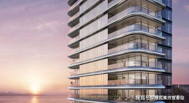 塔楼的海景界面配置落地单元式幕墙,最大化窗地比,提升采光通透度;开启扇选用落地平推窗,进一步优化观景体验。立面设计兼顾不同视角的观赏感受 —— 远观建筑群是含蓄优雅的都市人居画卷,中观是光影流转的空间雕塑,近观则是细节精致的材质美学,尽显立面设计巧思。