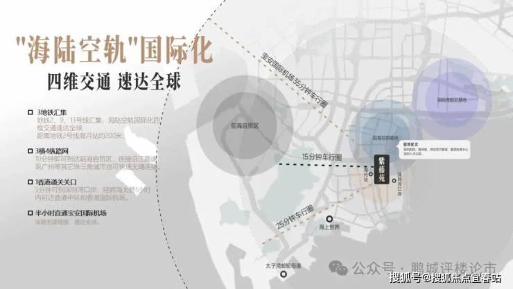地铁2、11、13号线汇集,项目距离地铁2号线海月站(A出口)约200米;3横4纵路网:10分钟即可到达前海自贸区,至广州等其它珠三角城市也可快速无缝连接;5分钟可到深圳湾口岸、经跨海大桥1小时内可达香港中环和香港国际机场。