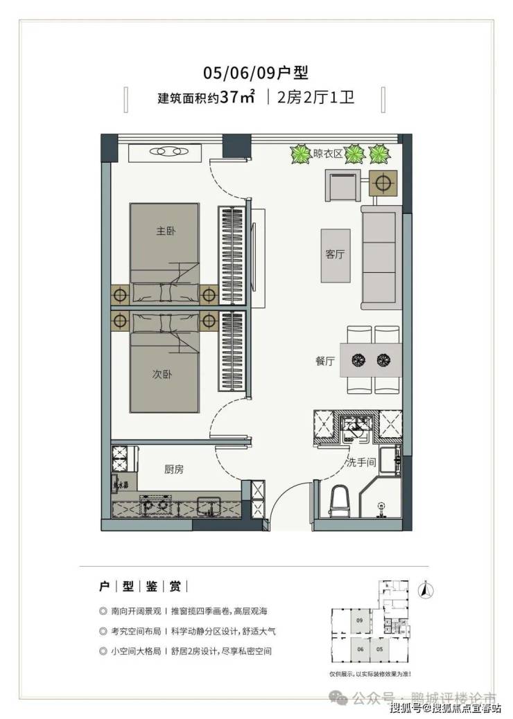 05/06/09户型(2房2厅1卫)建筑面积约:37㎡,套内使用面积约:52㎡