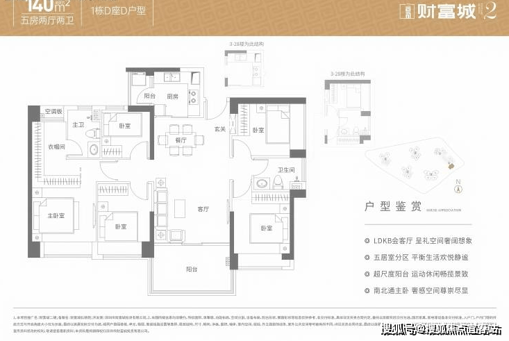 改善优选:105-140㎡四至五房适合多孩家庭或注重空间舒适性的购房者,南北通透设计和双阳台提升居住体验。